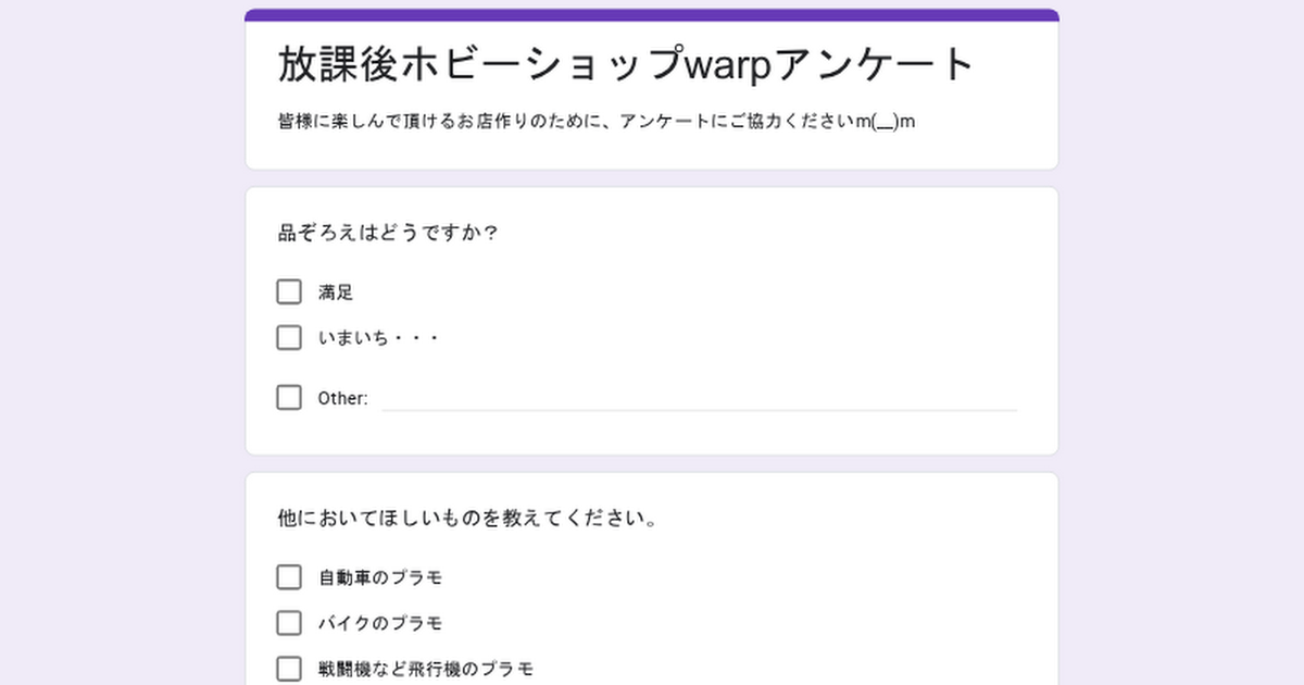 いつも「放課後ホビーショップwarp」をご愛顧いただき、ありがとうございます。